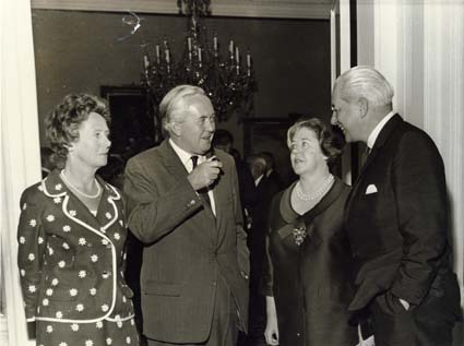 English: Harold and Zara Holt with Harold and Mary Wilson in 1950.
