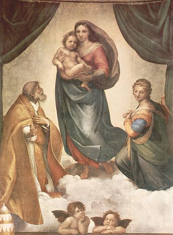 Deutsch: Sixtinische Madonna, Szene: Maria mit Christuskind, Hl. Papst Sixtus II. und Hl. Barbara