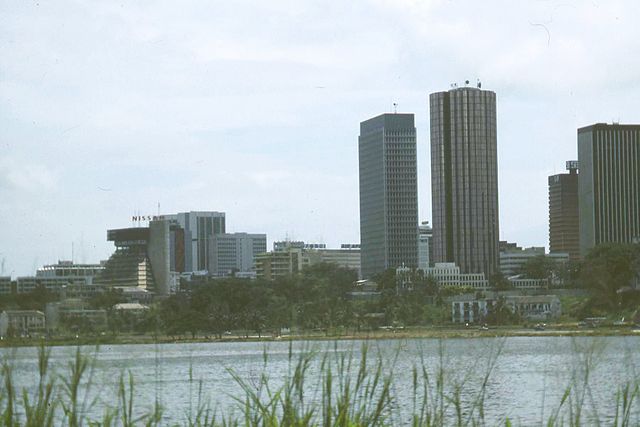 English: Towers on  Ébrié Lagoon, in the Plateau District, Abidjan, Côte d'Ivoire.