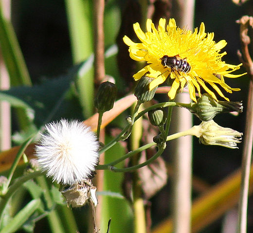 English: Self made image of Hawkbeard, showing flower head and seed heads.