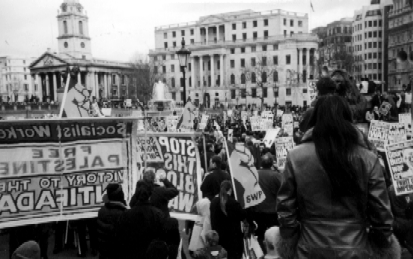 English: An anti-war rally in Trafalgar Square, London, England.