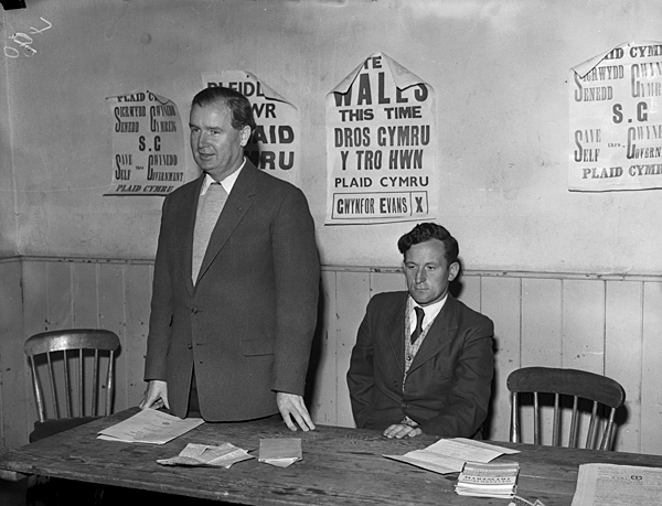 Teitl Cymraeg/Welsh title: Etholiad 1959 ym Meirion. Ffotograffydd/Photographer: Geoff Charles (1909-2002) Nodyn/Note: Gwynfor Evans (Plaid Cymru) talking at Bryncrug. Dyddiad/Date: October 1, 1959 Cyfrwng/Medium: Negydd ffilm / Film negative Cyfeiriad/Reference: (gch20976) Rhif cofnod / Record no.: http://cat.llgc.org.uk/cgi-bin/gw/chameleon?skin=eresources&lng=en&inst=consortium&conf=./chameleon.conf&search=KEYWORD&function=INITREQ&elementcount=1&u1=12101&op1=0&t1= 3470389" rel="nofollow">3470389