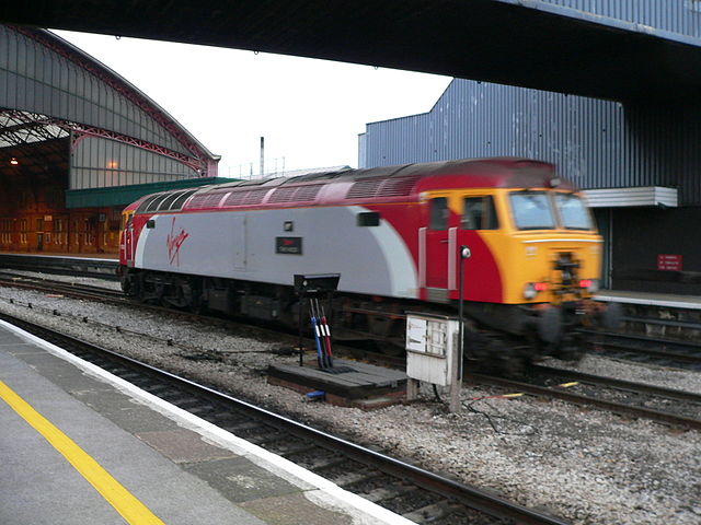 Virgin Cross-Country Class 57 Thunderbird locomotive 57312 The Hood passes through Bristol Temple Meads on a light engine trip south.
