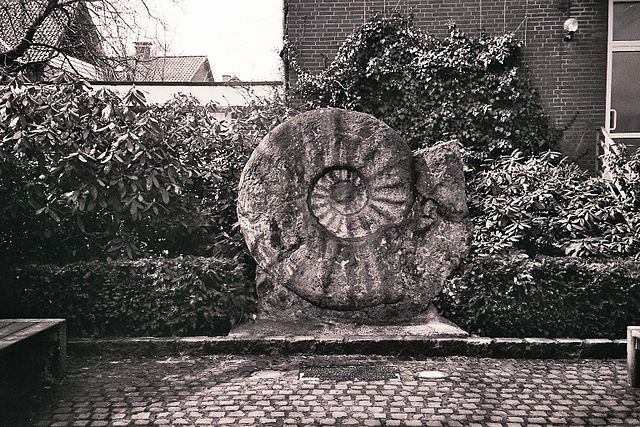 Deutsch: Der Abguss des weltgrößten bislang aufgefundenen Ammoniten Parapuzosia seppenradensis, aufgestellt in Seppenrade, Deutschland, seinem Fundort