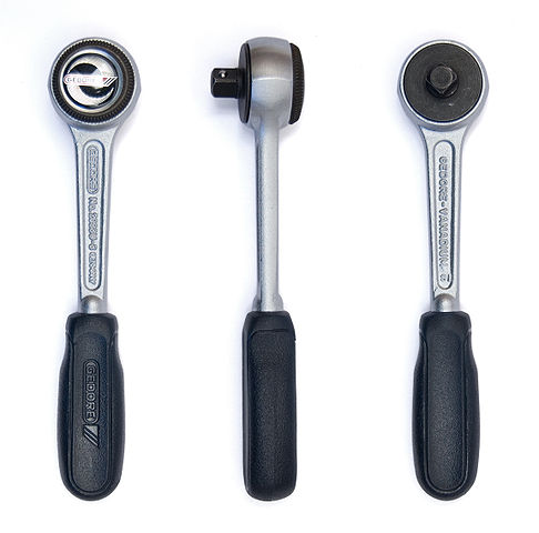 Deutsch: Knarre bzw. Ratsche der Firma Gedore, 1/4" Ausführung. Aufschrift: Vorderseite: GEDORE No. 2093U-3 GERMANY; Rückseite:GEDORE-VANADIUM SI