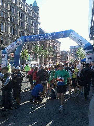 English: This is a photo of the starting point of the Belfast Marathon held on the 2nd May 2011. It is being used to help add depth to the Belfast Marathon wikipedia page.