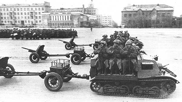 Артиллерийский тягач Т-20 "Комсомолец" на параде 7 ноября 1941 года в Куйбышеве.