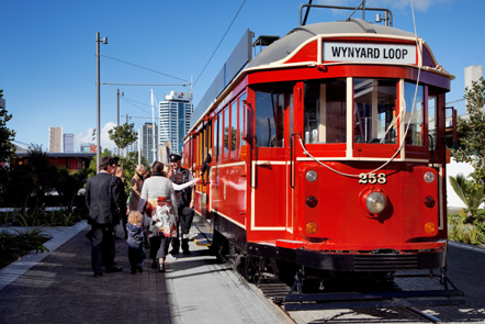 English: A Tram on the Wynyard Loop on Aucklands waterfront in New Zealand.