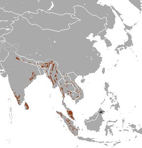 English: Asian Elephant (Elephas maximus) range (brown — native, dark gray — origin uncertain)
