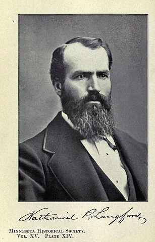 Portrait of Nathaniel P. Langford from THE VIGILANTE, THE EXPLORER, THE EXPOUNDER AND FIRST SUPERINTENDENT OF THE YELLOWSTONE PARK. BY OLIN D. WHEELER. (1912) From the text of an presentation given by Wheeler to the Montana Historical Society. Date of portrait is thought to be 1870.