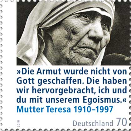 Deutsch: Briefmarke der Deutschen Post AG aus dem Jahre 2010, 100. Geburtstag Mutter Teresa