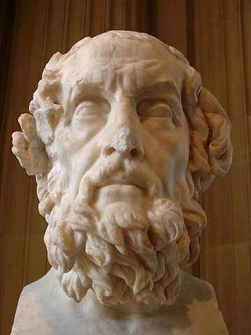 Ελληνικά: φανταστική προτομή του Ομήρου, ρωμαϊκό αντίγραφο (2ος αιώνας) του αυθεντικού ελληνικού (2ος αιώνας π.Χ.)