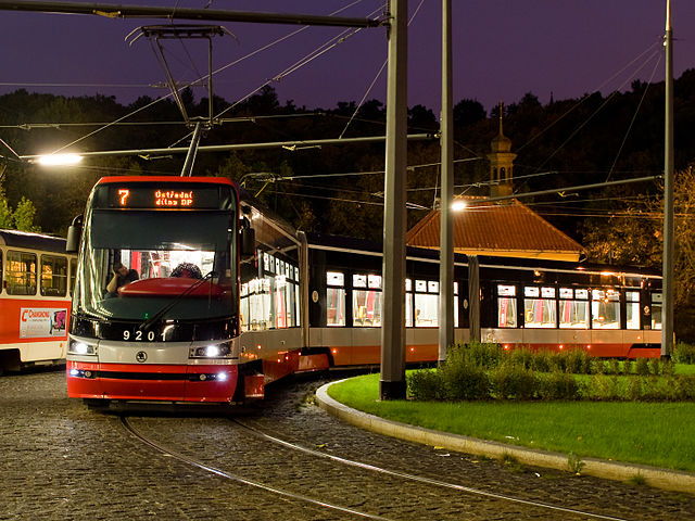 Česky: Nová pražská tramvaj typu Škoda 15T manipuluje ve smyčce Radlická během prvního dne vypravení na linku; konkrétně vložené jedenasedmdesáté pořadí linky sedm.