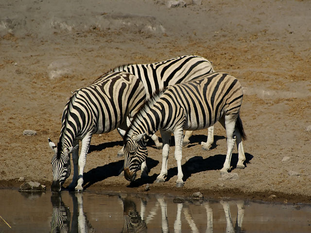 | Description | Equus quagga burchellii Gray, 1824 English: Damara Zebras at Chudop waterhole, Etosha, Namibia.