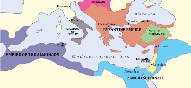 English: A map of the Byzantine Empire, c.1180AD