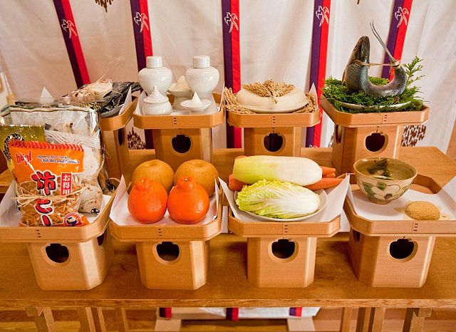 English: Shinsen offerings - Tsubaki Grand Shrine of America - A Branch Shrine of Tsubaki Jinja Japan.