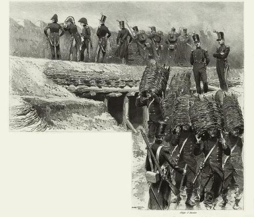 Engineer Corps, Siege of Anvers (1832). This illustration appeared in L'Armee Française by Jules Richard, illustrated by Édouard Detaille, first published in 1885.