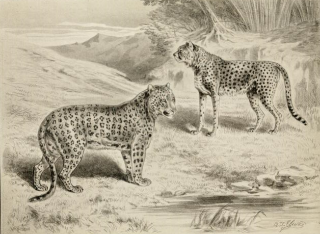 English: Illustration of a leopard and cheetah