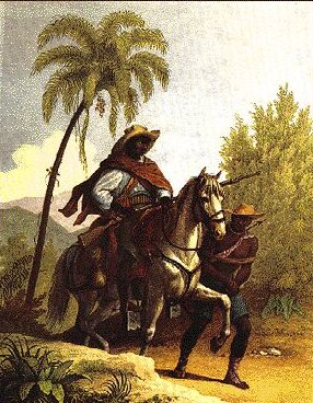 English: "Capitão-do-mato" (slave hunter). Watercolor by Johann Moritz Rugendas, 1823. (Public domain)