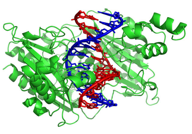 By Richard Wheeler ( Zephyris) 2007. Image of EcoRV homodimer in complex with a DNA substrate. From . |