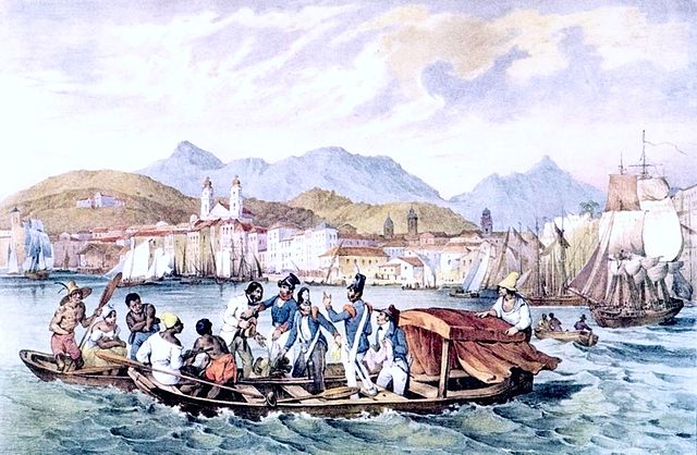 Português do Brasil: Porto da praia dos Mineiros no  Rio de Janeiro. Desembarque de negros.
