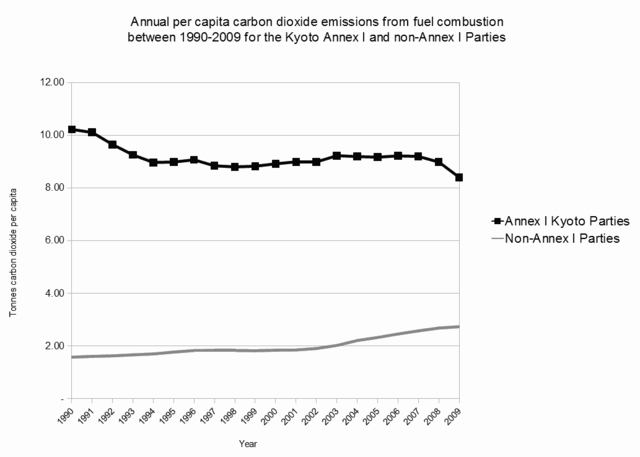 | DescriptionAnnual per capita carbon dioxide emissions from fuel combustion between 1990-2009 for the Kyoto Annex I and non-Annex I Parties.png |