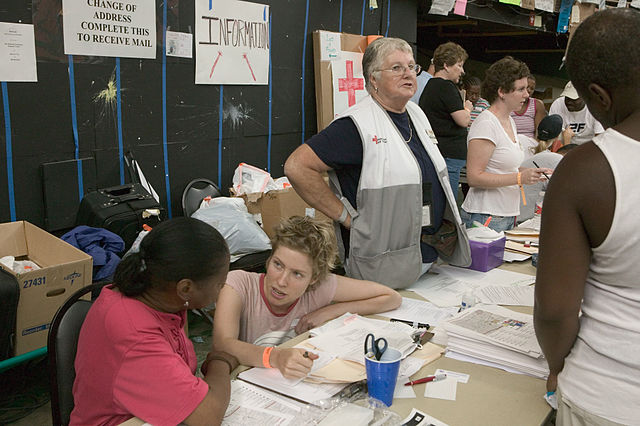 English: Houston,TX.,9/5/2005--The Red Cross continues to assist the 18,000 hurricane Katrina survivors that are housed in the Red Cross shelter at the Astrodome and Reliant centerwith emergency needs. FEMA photo/Andrea Booher