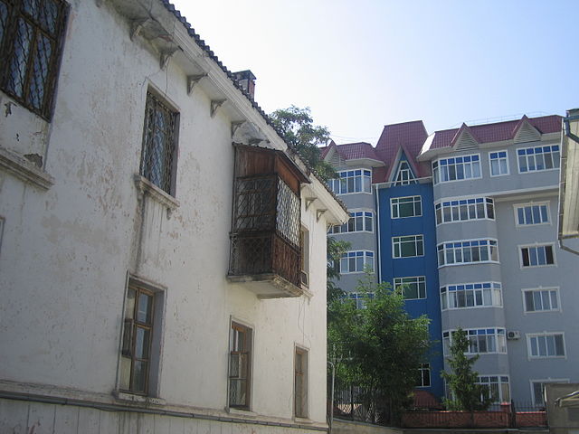 English: Old and new buildings in Bishkek, Kyrgyzstan.