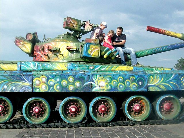 English: Painted battle tanks at the World War II Memorial, Kiev, Ukraine