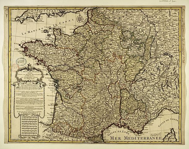 Original upload :  Image:Philippe Buache Carte de France divisee suivant les quatres departements de Messieurs les secretaires dEtat 07710637.jpg with a mistake in the title