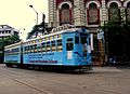 Frysk: Fan boppe, mei de klok mei: Victoria Memorial, St. Paul's Anglican Cathedral, Downtoan Kolkata, Howrah Bridge, Kolkata tram, Vidyasagar Setu Bridge