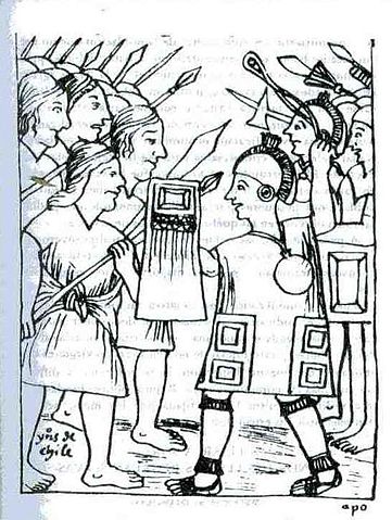 Representacion de Guamán Poma de Ayala sobre un enfrentamiento entre Indios de Chile (izquierda) y el capitán Apu Camac Inca
