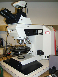 English:  en:Leica DMRX incident light microscope with mechanical stage and Swift F automated point counter for analysis of organic composition of coal and rock samples. Image found  here.