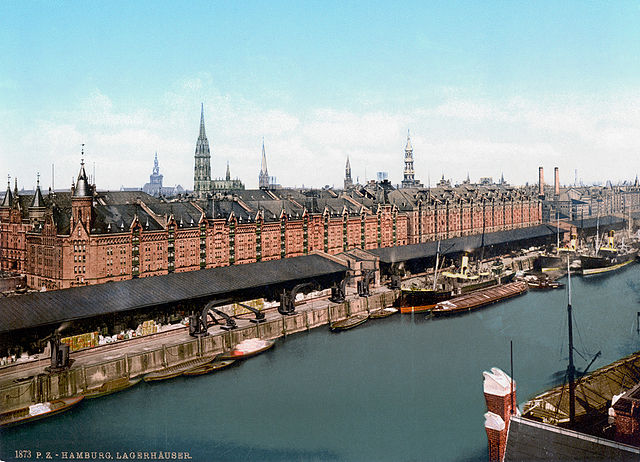 Deutsch: Die Hamburger Speicherstadt um 1890.