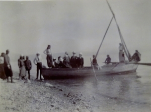 English: On the Sea of Galilee, Tiberias, 1891. From original silver print in book titled: "A Month in Palestine and Syria, April 1891," (author unknown). Original 19th century book in the possession of Kimberly Blaker, New Boston Fine and Rare Books.