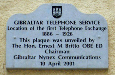 Plaque marking site of first Gibraltar telephone exchange in City Mill Lane, Gibraltar |