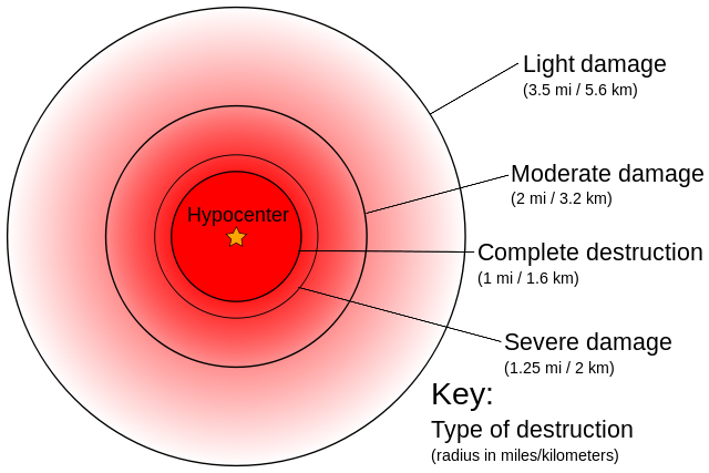 An estimate of the amount of damage resulting from the Atomic bombings of Hiroshima and Nagasaki in 1945.