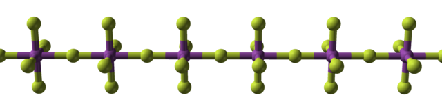Ball-and-stick model of part of the crystal structure bismuth pentafluoride, BiF5. X-ray crystallographic data from Z. anorg. allg. Chem. (1971) 384, 111-114.