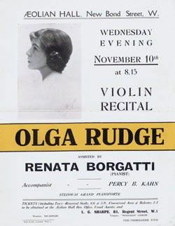 English: Advertisement for concert by violinist  en:Olga Rudge and pianist  en:Renata Borgatti, held at  en:Aeolian Hall, London, November 10, 1920. For information on concert, see, e.g., Olga Rudge and Ezra Pound: "What thou lovest well-- " (2001), by Anne Conover Carson, pp. 45–46.