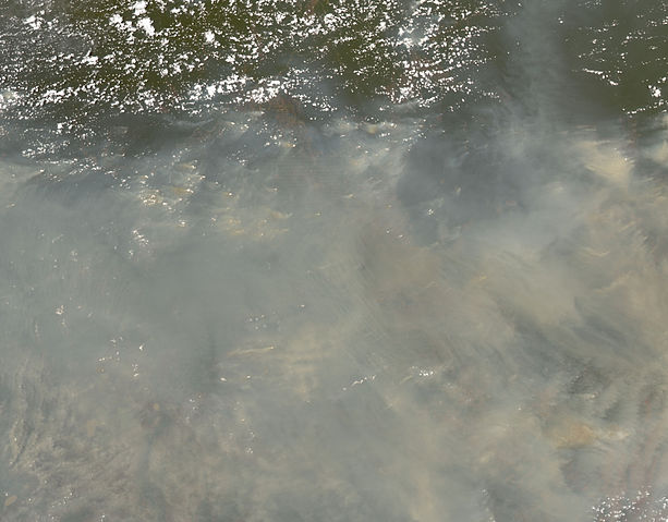English: This image shows one consequence of forest clearing in the Amazon: thick smoke that hangs over the forest.