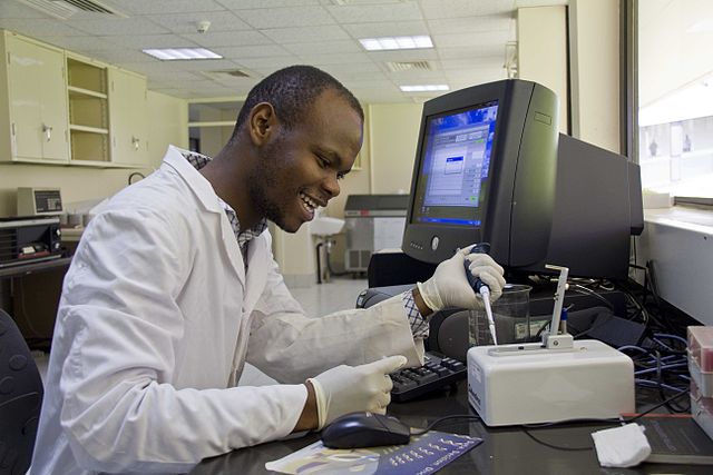 English: An MSc student at Kenyatta University, works with ICRISAT-Nairobi on the use of molecular markers in agriculture to speed up success in plant breeding programs.
