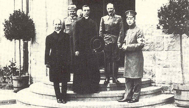 Copyright expired photo of Eugenio Pacelli in 1917 in front of the Imperial German Headquarters after an audience with emperor William II