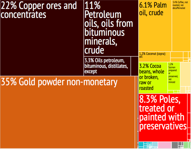 English: Papua New Guinea Export Treemap from MIT Harvard Economic Complexity Observatory