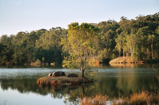 Lake with hippos in the Mlilwane reserve, Swaziland. Taken in August 2003 by Eckhard Pecher, published under GNU license. Taken from de:Bild:ZA03B0013.jpg.