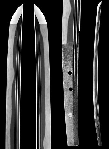 Soshu school katana, shortened from tachi and signature lost, attributed to Etchu Norishige and ranked NBTHK Tokubetsu Juyo Token. |