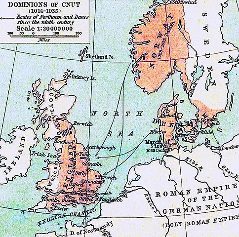 English: I doctored File:Cnut 1014 1035.jpg, in accordance with information on - http://www.tacitus.nu/historical-atlas/scandinavia/denmark.htm - which states England is 1013-1042 with short interruptions ruled by the kings of Denmark. 1028 Canute the great also conquers Norway and a part of Sweden. User: WikieWikieWikie.