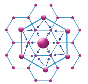 Christaller's first model of distribution of cities on space, according to the market principle. |