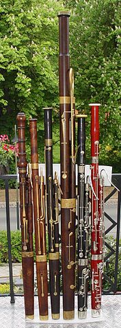 Bassons in different styles, including baroque, classical and modern, plus classical contrabassoon