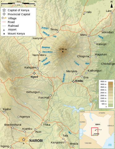 This is a retouched picture, which means that it has been digitally altered from its original version. Modifications: Translated to English. The original can be viewed here: Mount_Kenya_Region_map-fr.svg. Modifications made by Mehmet Karatay.