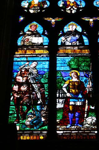Italiano: Vetrata rinascimentale (sec. XV) con San Giorgio e San Teodoro, nella Basilica dei santi Giovanni e Paolo a Venezia. Foto di Giovanni Dall'Orto, 2 luglio 2006.